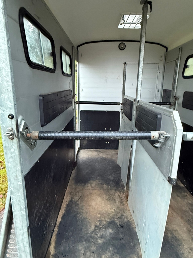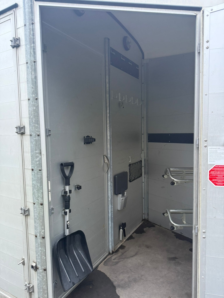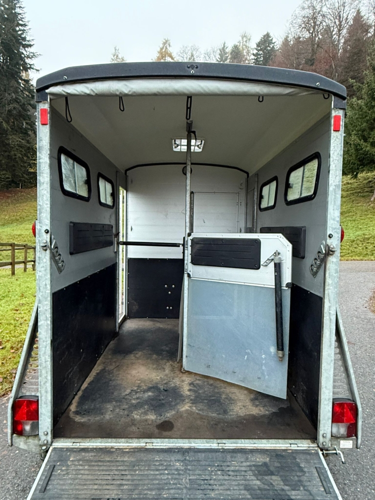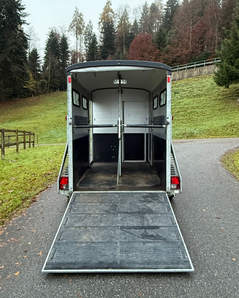 | Description | 2 horses Roof hatch Window Rubber floor Rubber partition Rear ramp with door ramp system Tarpaulin blind Folding partition Aluminum floor Tack room Saddle and bridle holder Large door WCF Plus chassis Permissible total weight 2,700 kg FOR US, THE CONDITION AND THE FEEL OF THE TRAILER IS DECISIVE, THE PRICE IS IN SECOND PLACE. |