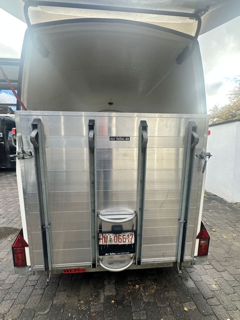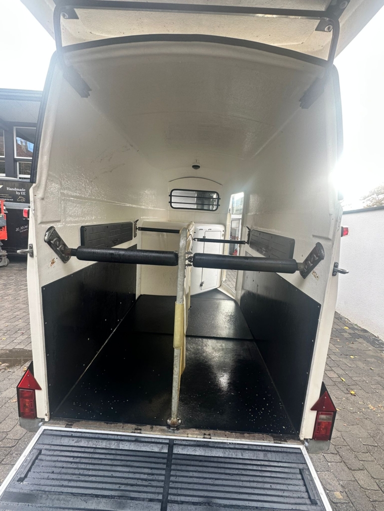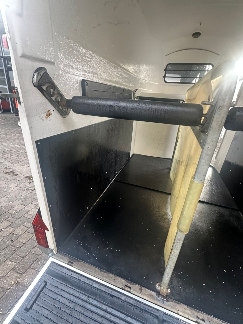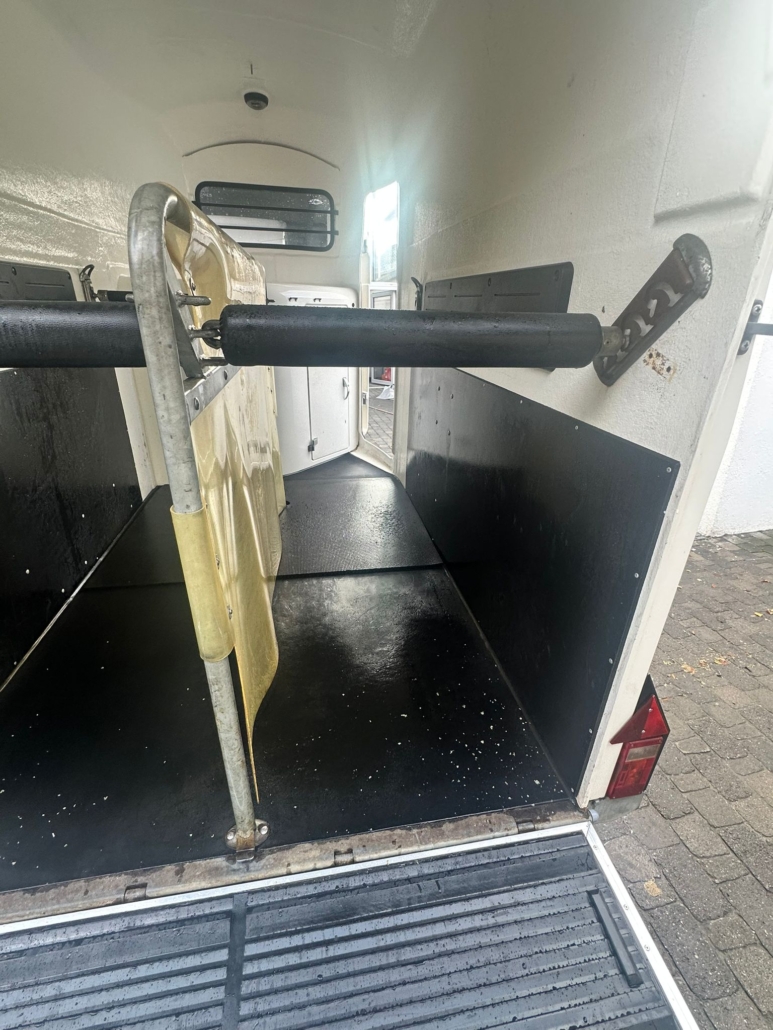 | Description | 2 horses Feed trough Window Large door Rubber floor Rubber partition Rear ramp Tailgate Tack room with 2 doors Saddle and bridle holder Aluminum floor New aluminum ramp Spare wheel Permissible total weight 2,400 kg FOR US THE CONDITION AND THE FEEL OF THE CONSTRUCTION IS DECISIVE, THE PRICE IS IN SECOND PLACE. |