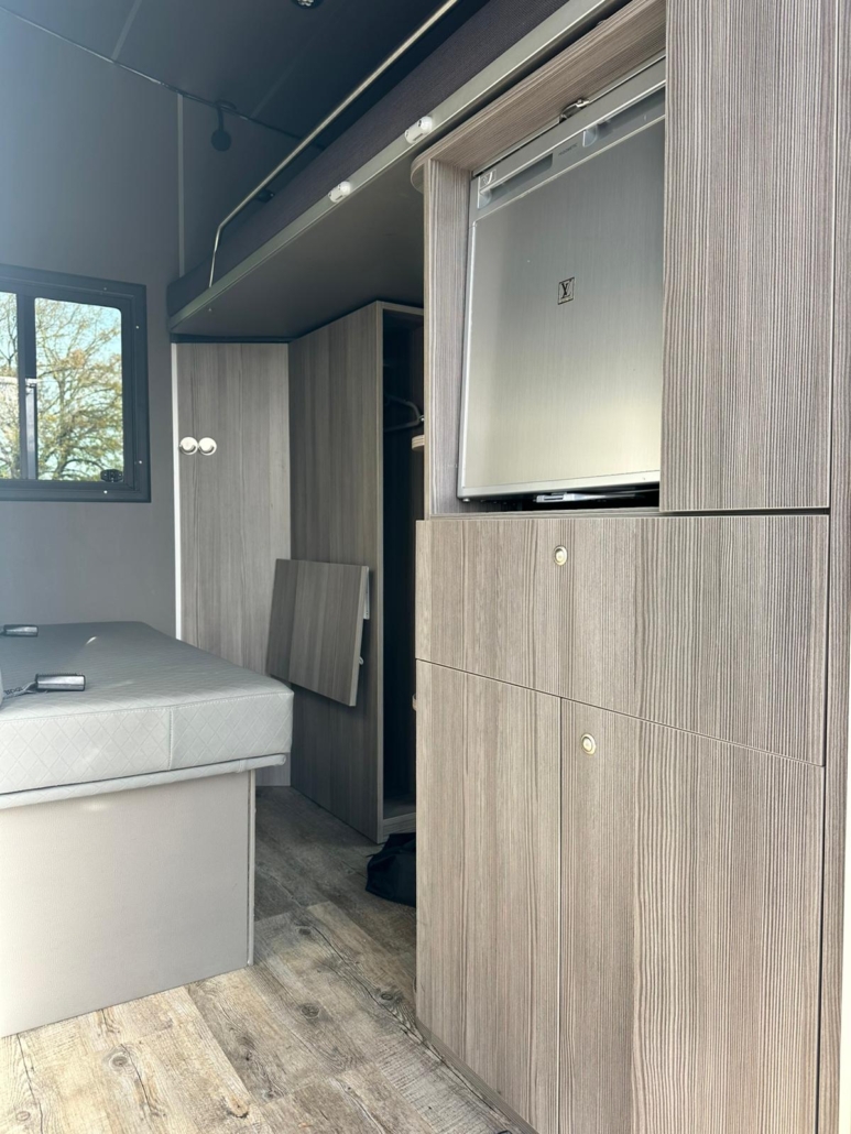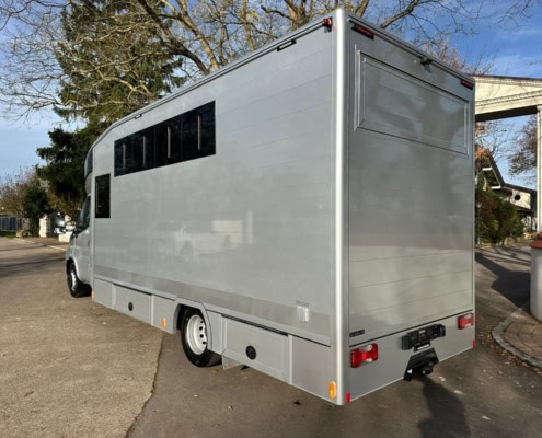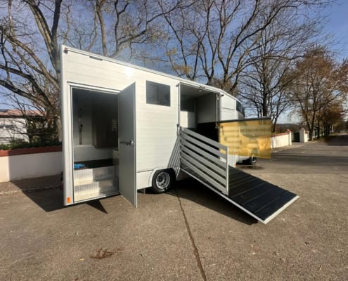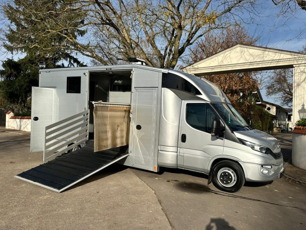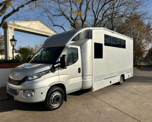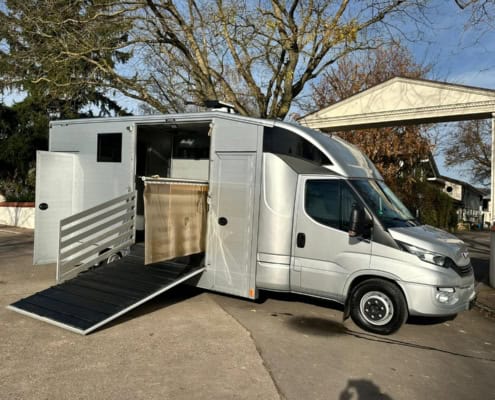 | Description | Diesel Automatic Euro 6 green environmental badge Aluminum body Trailer hitch Rear view camera Tachograph Coupe entry 4 registered seats Parking heater Air conditioner Topsleeper Refrigerator Electrical connection Storage cabinets Solardach SAT system Horse compartment window Roof hatches Security camera in horse compartment Side ramp Ramp limiter 2 horses Stallion separation possible Passage from horse compartment to tack room separate tack room Saddle and snaffle holder Permissible total weight 7,490 kg FOR US, THE CONDITION AND THE FEEL OF THE BUILDING ARE DECISIVE, THE PRICE TAKES SECOND PLACE. |
