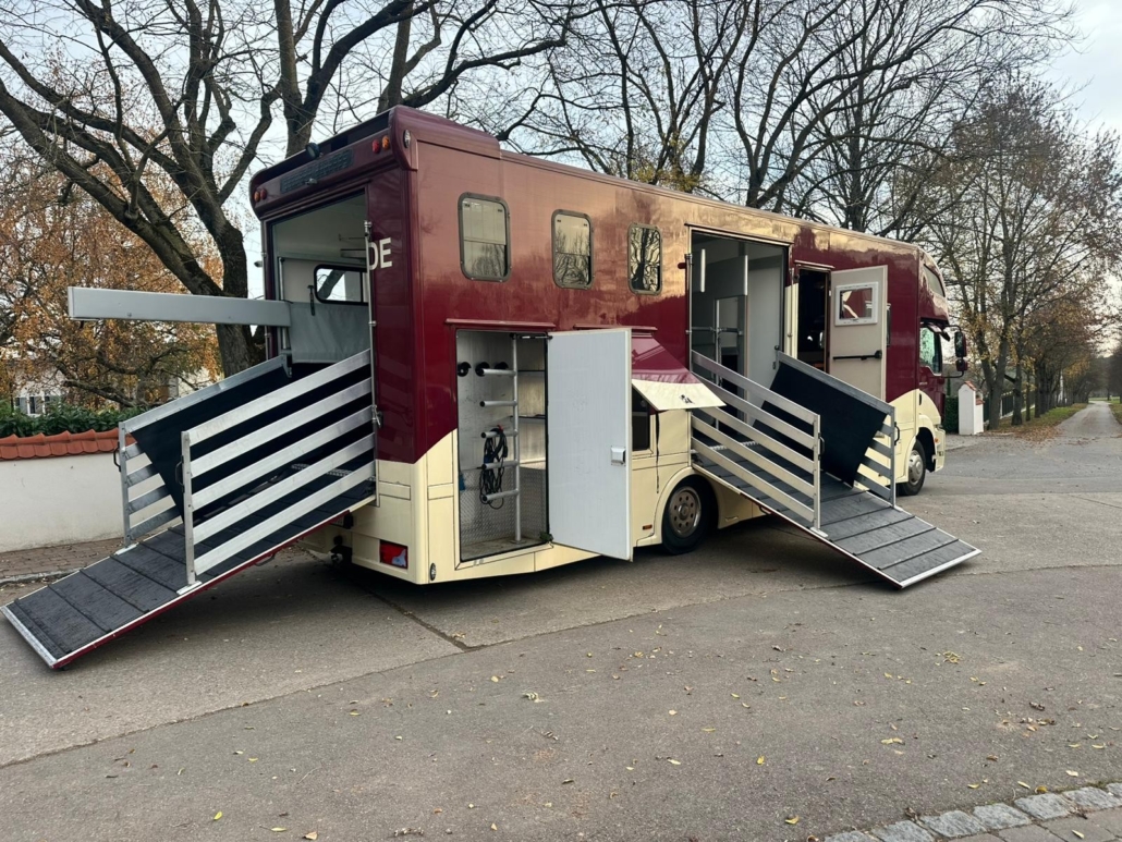 | Description | Diesel Manual transmission Trailer hitch 3 seater Euro 6 green environmental badge Rear view camera Air conditioner Topsleeper 4 berths Bed TV Refrigerator WC Shower Washbasin Sitting area Hob Sink Storage cabinets Side ramp Tail ramp Ramp limiter Feeding trough Horse compartment window external tack room Saddle and divider holder Permissible total weight 15,000 kg FOR US, THE CONDITION AND THE FEEL OF THE BUILDING ARE DECISIVE, THE PRICE TAKES SECOND PLACE. |