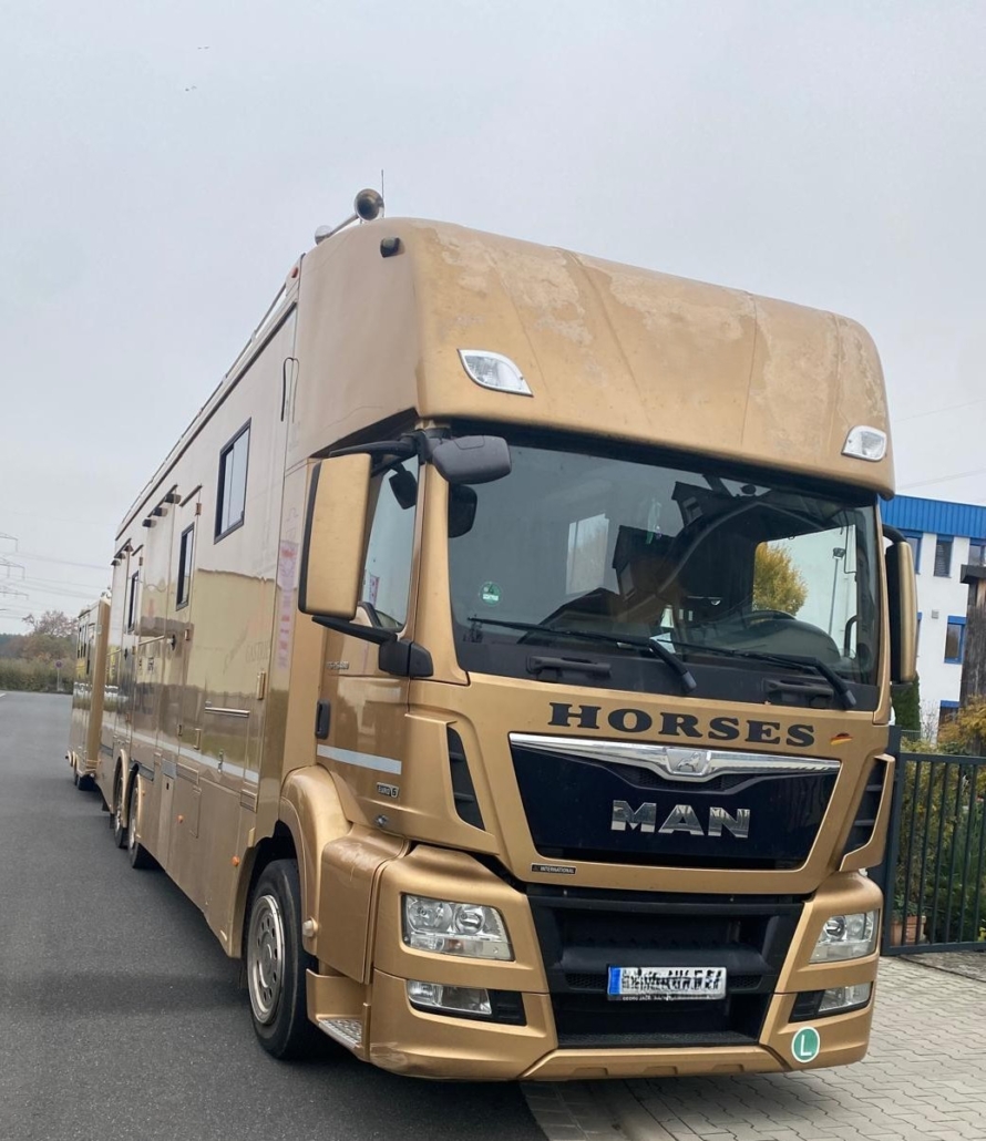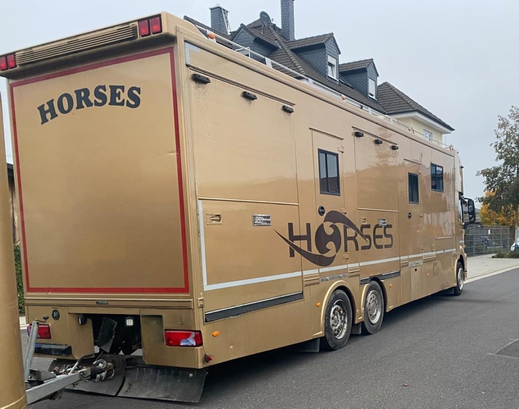 | Description | Diesel Automatic Air conditioner 2-seater Euro 6 green environmental badge Center armrest Trailer hitch Multifunction steering wheel power windows Radio Navigation system Breakthrough Topsleeper 5 berths Sitting area Microwave Refrigerator Hob Bed over the shower 2x TV Shower WC Washbasin Storage cabinets 5 horses all horses can be removed individually Stallion separation 4 side ramps Ramp limiter Horse compartment window Security camera in horse compartment Roof hatches walk-in tack room Saddle and bridle holder Cable winch Storage space permissible total weight 26,000 kg FOR US, THE CONDITION AND THE FEEL OF THE BUILDING ARE DECISIVE, THE PRICE TAKES SECOND PLACE. |
