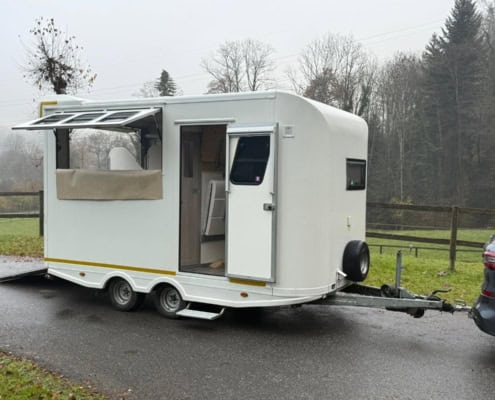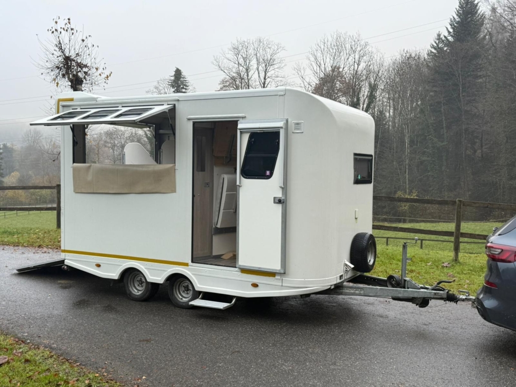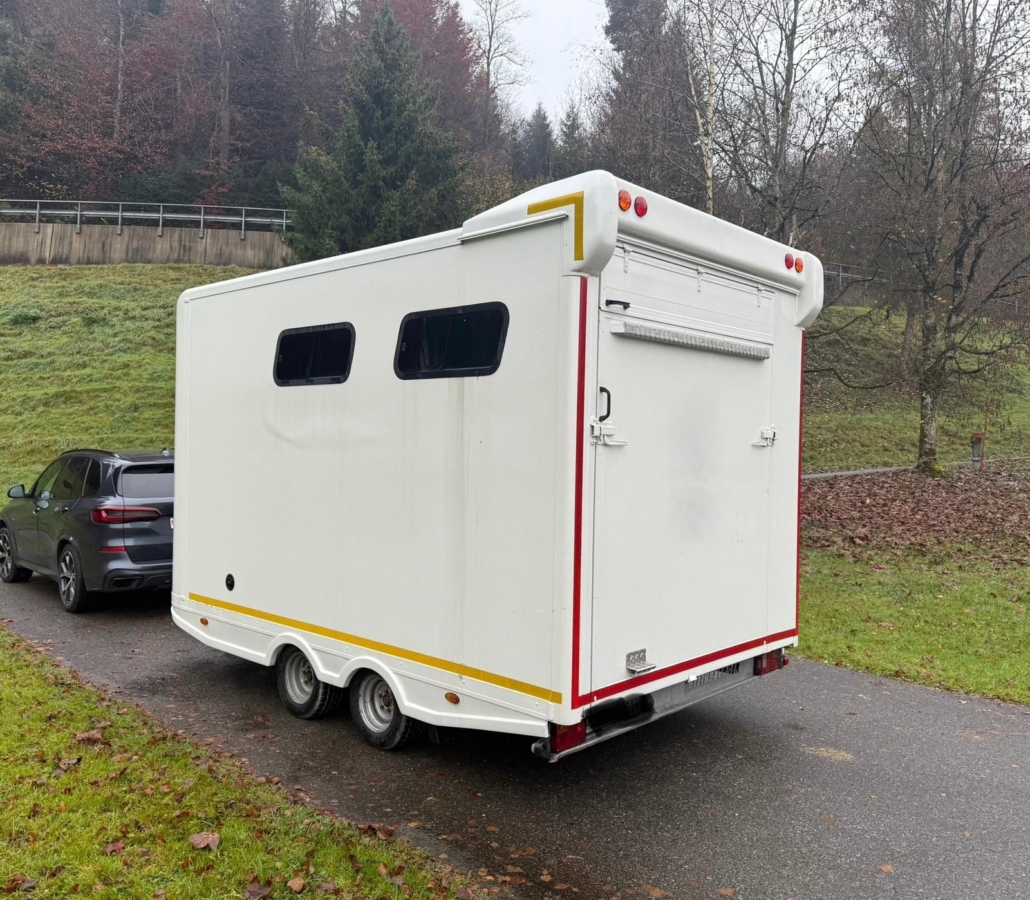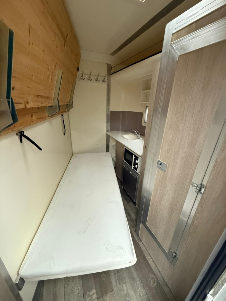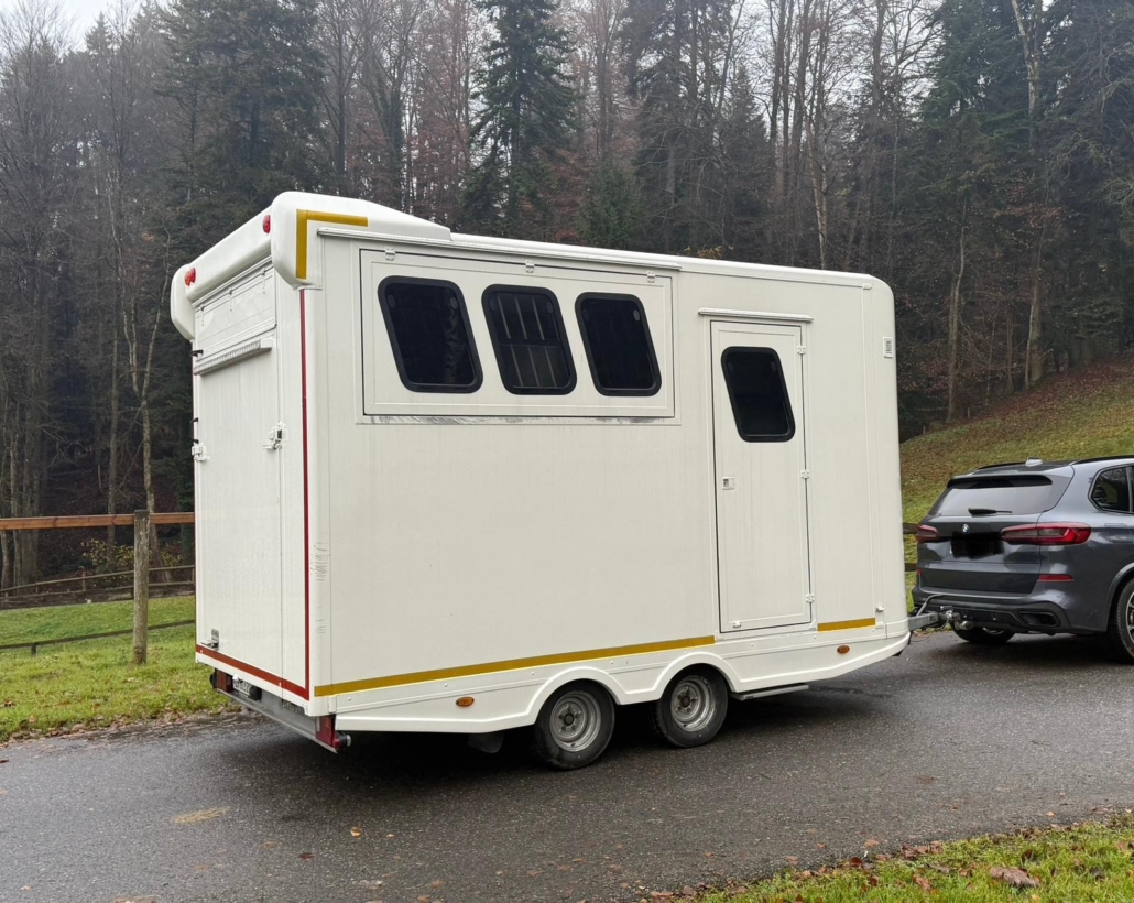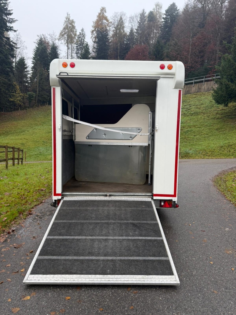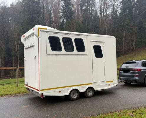 | Description | 3 horses 2 sleeping berths 2 folding beds Roof hatches Sink Flat Storage cupboards Fridge Microwave Shower Aluminium floor Window in the horse compartment Openable window in the horse compartment Rear ramp Spare wheel Permissible total weight 3,500 kg FOR US, THE CONDITION AND THE FEEL OF THE TRAILER IS DECISIVE, THE PRICE IS IN SECOND PLACE. |