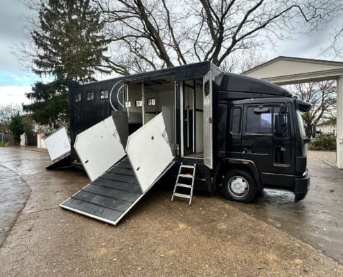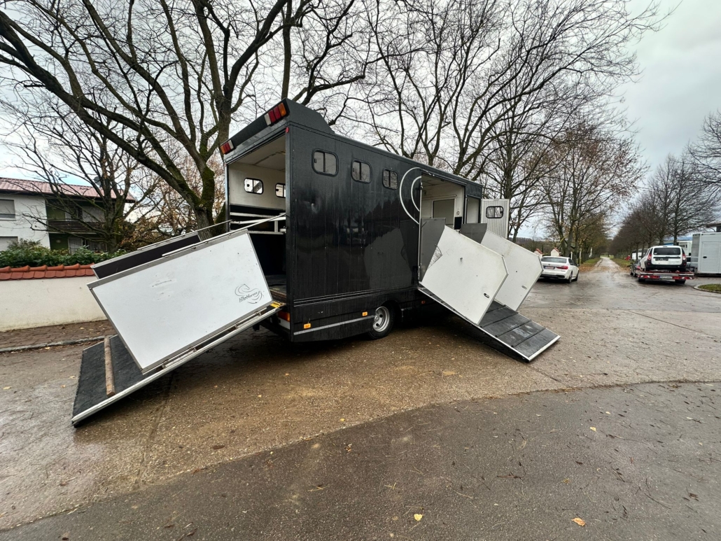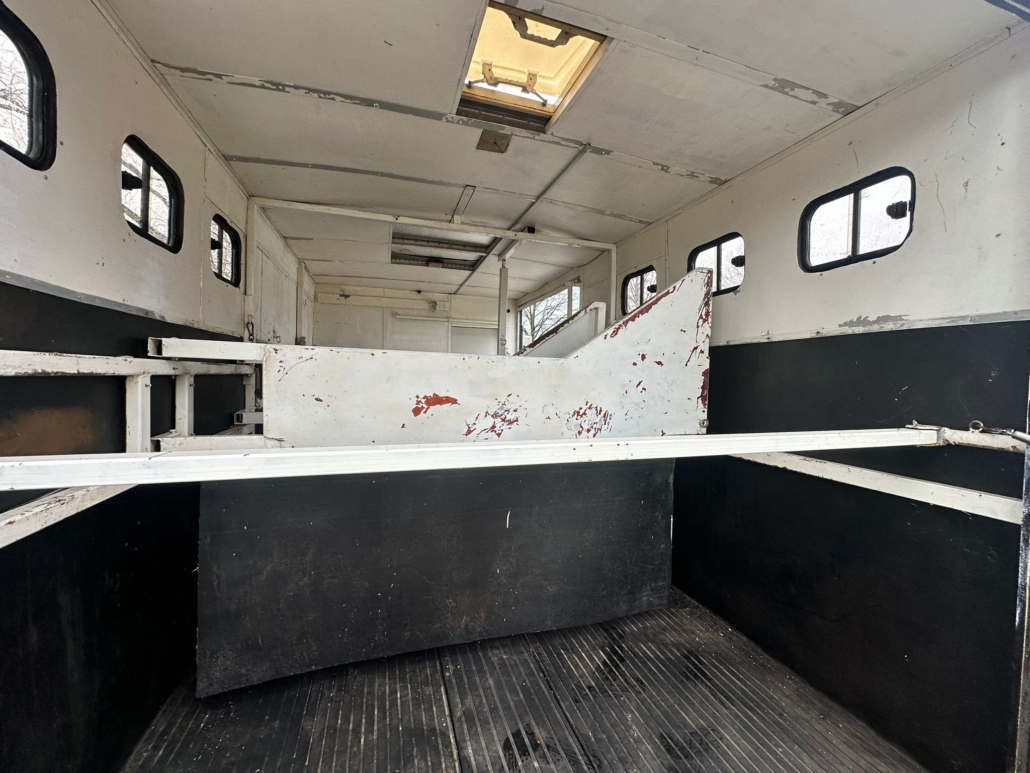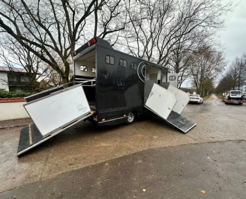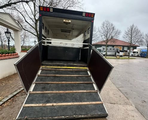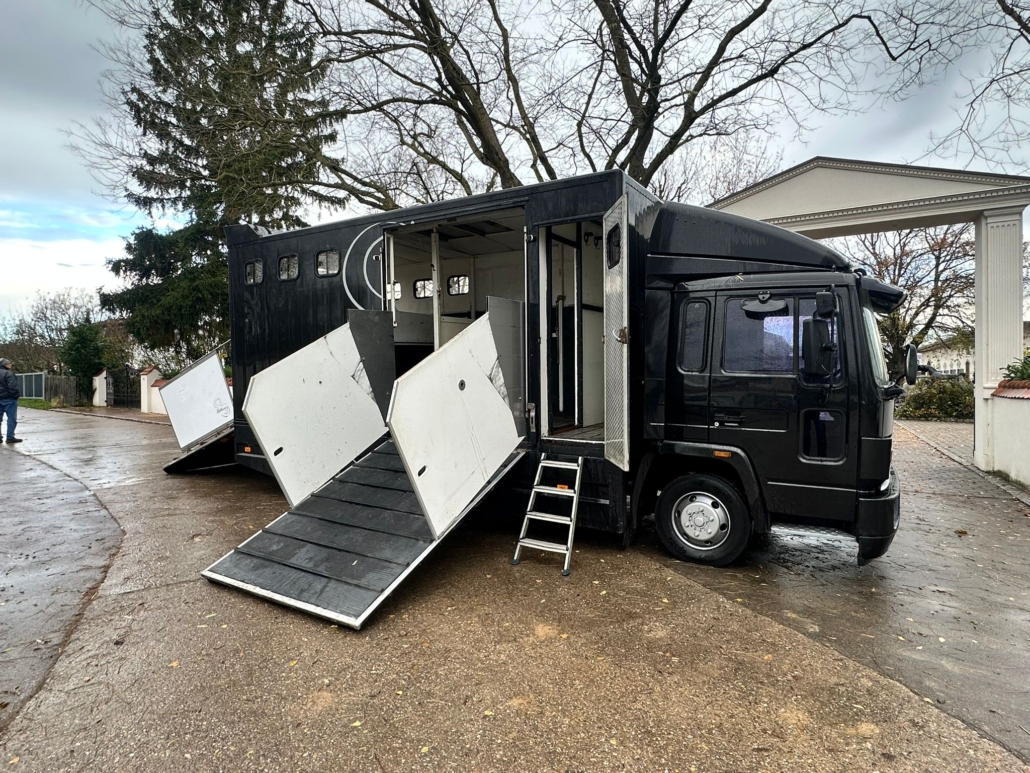 | Description | Diesel Manual gearbox 3-4 horses 2-seater Rear and side ramp Ramp limiter Windows in the horse compartment Roof hatches Walk-in tack room Saddle and bridle racks Gross vehicle weight rating 7,500 kg FOR US, THE CONDITION AND THE FEEL OF THE BUILDING ARE DECISIVE, THE PRICE TAKES SECOND PLACE. |