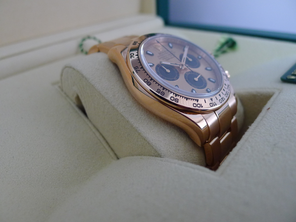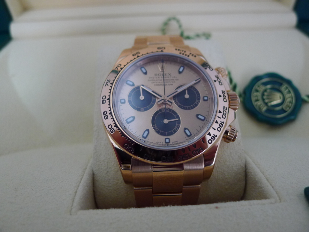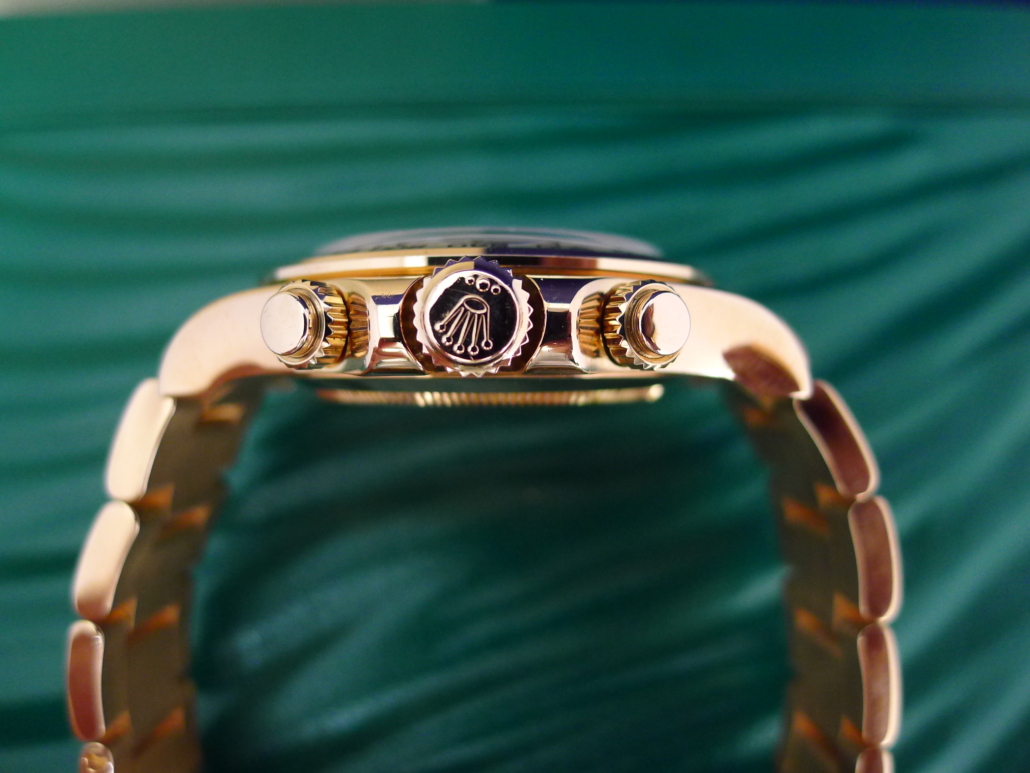 | Description | Reference: 116505 Condition: New Year of manufacture: 2013 Men’s watch / Unisex with original box and original papers Work: Elevator: Automatic Housing: Material case: rose gold Bezel material: Rose gold Glass: sapphire crystal Numbers Dial: No numerals Bracelet: Bracelet material: Rose gold Color bracelet: gold Clasp: folding clasp Material clasp: Rose gold German safe watch with all documents, NOS! |