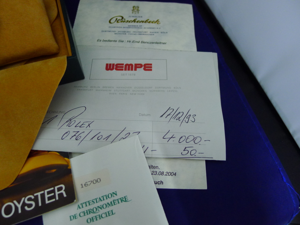 | Description | Reference: 16700 Condition: Very good Year of manufacture: 1993 With original box and original papers Men’s watch / Unisex Movement: Winding: Automatic Case: Case material: Steel Diameter: 40 mm Dial: Black Bracelet: Bracelet material: Steel Bracelet color: Steel Perfect German watch with all documents, overhaul by Rüschenbeck in 2004 and new purchase invoice from Wempe. |